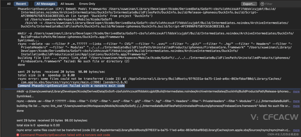 解决XCode错误:Command PhaseScriptExecution failed with a nonzero exit code